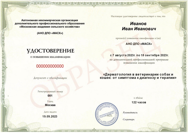- Образец удостоверения о повышении квалификации.