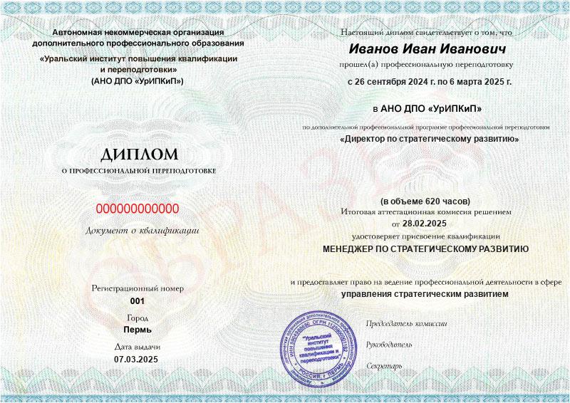 • Официальный диплом о профпереподготовке
