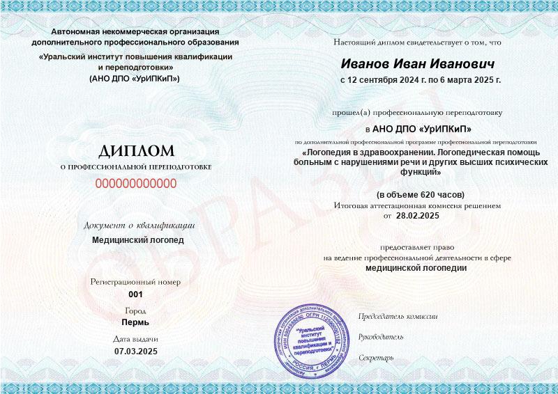 Курс обучения Логопедия в здравоохранении. Логопедическая помощь больным с нарушениями речи и других высших психических функций (620ч)