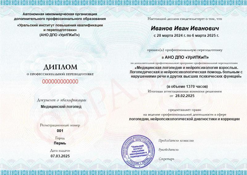 Курс обучения Медицинская логопедия и нейропсихология взрослых. Логопедическая и нейропсихологическая помощь больным с нарушениями речи и других высших психических функций (1370ч)
