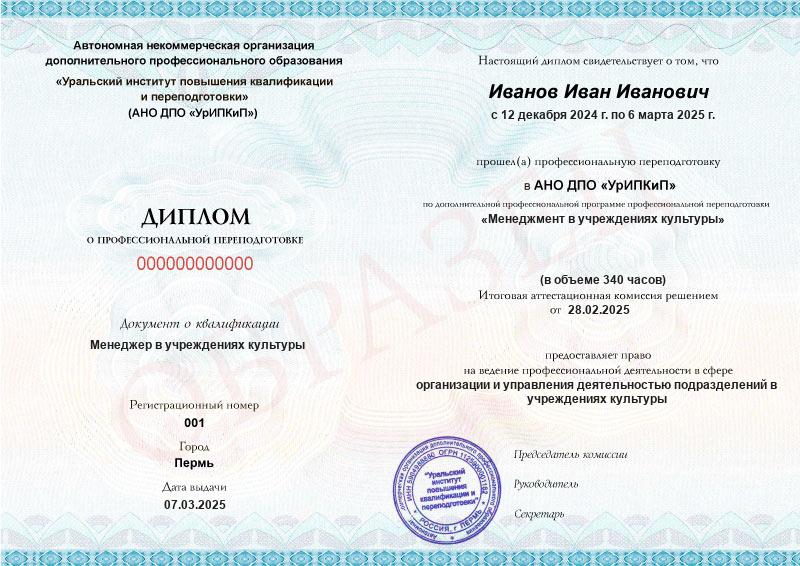 Да, дипломы и удостоверения оформляются в соответствии с действующим законодательством РФ. Документы печатаются на специальных бланках, заверяются печатью АНО ДПО «УрИПКиП».