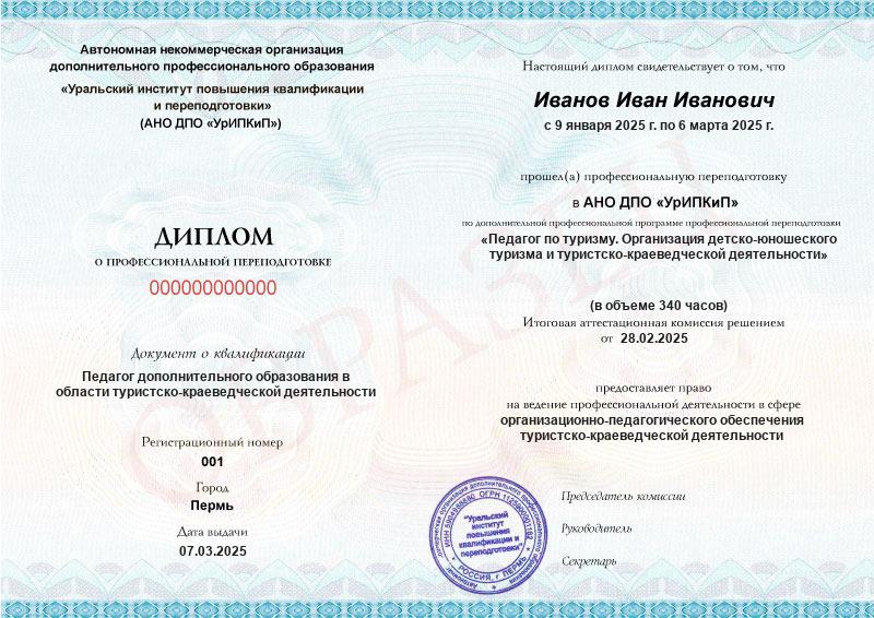 • Квалификация: Педагог дополнительного образования в области туристско-краеведческой деятельности