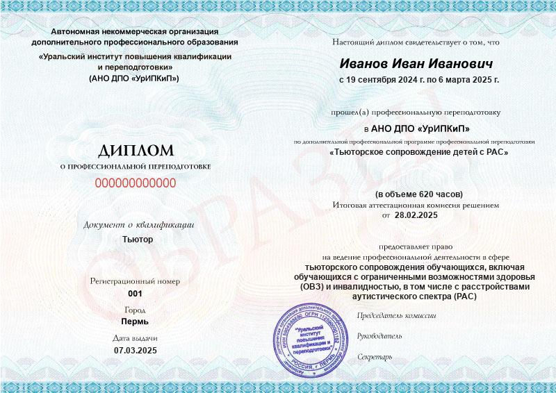Да, дипломы и удостоверения оформляются в соответствии с действующим законодательством РФ. Документы печатаются на специальных бланках, заверяются печатью АНО ДПО «УрИПКиП».