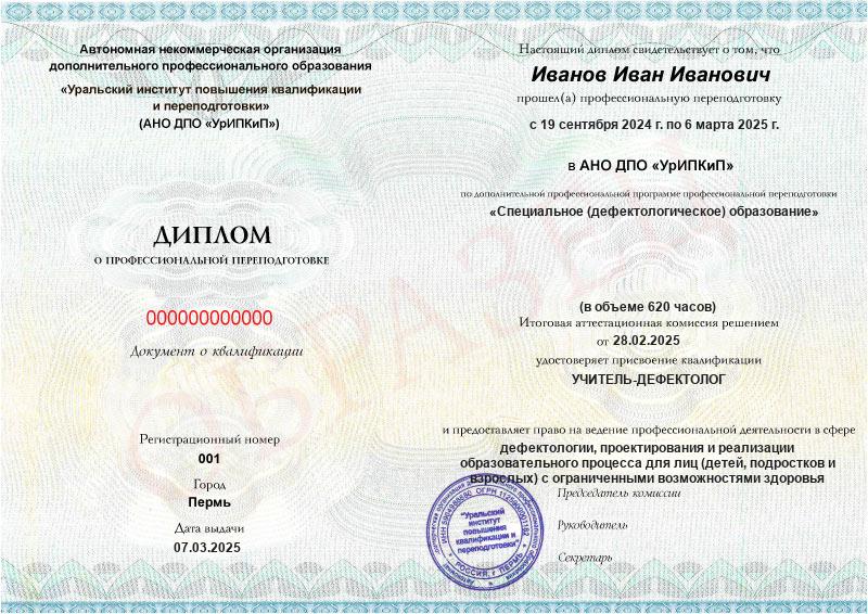 - Образец диплома о профессиональной переподготовке.